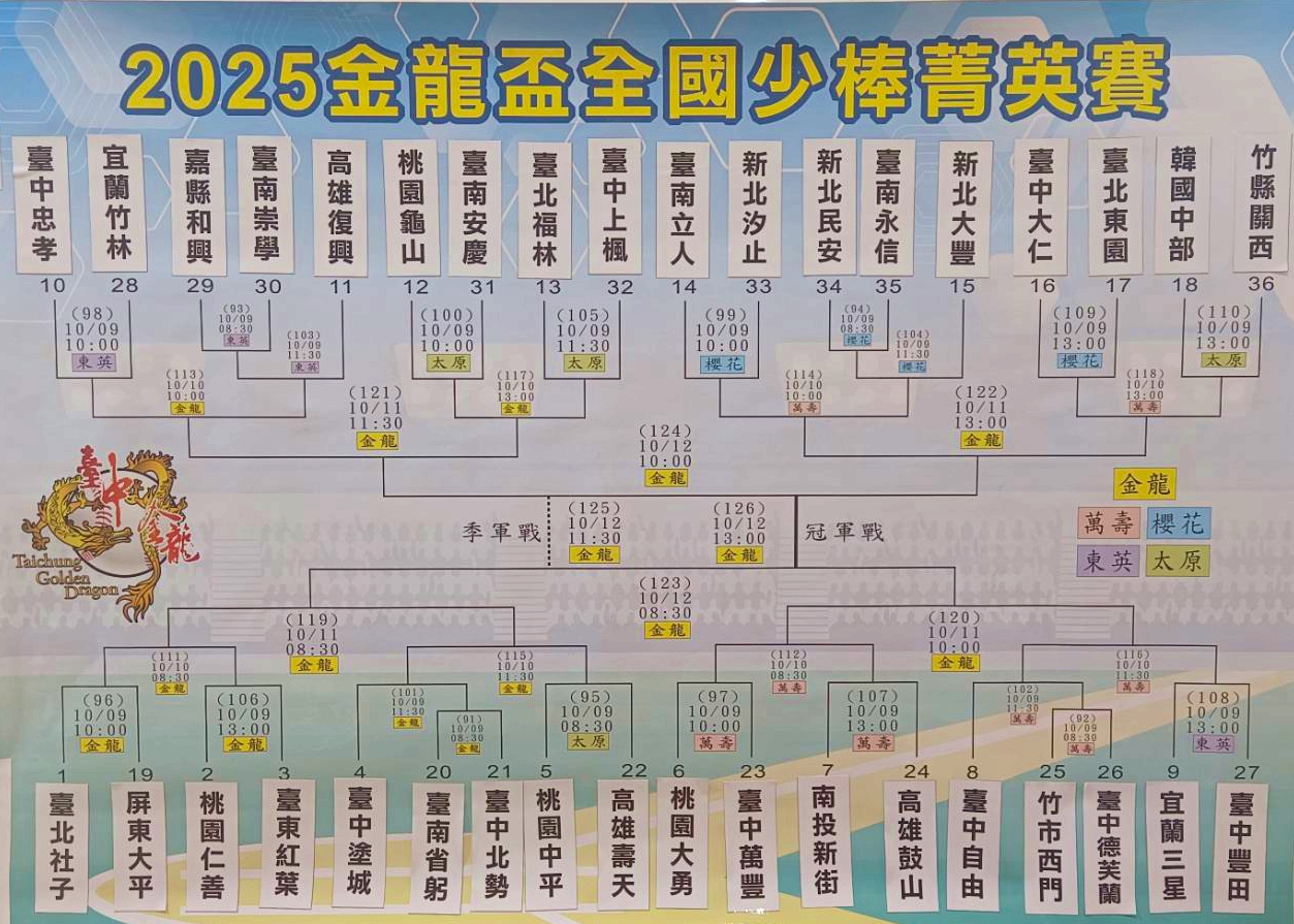 2025金龍盃少棒菁英賽 36強抽籤結果